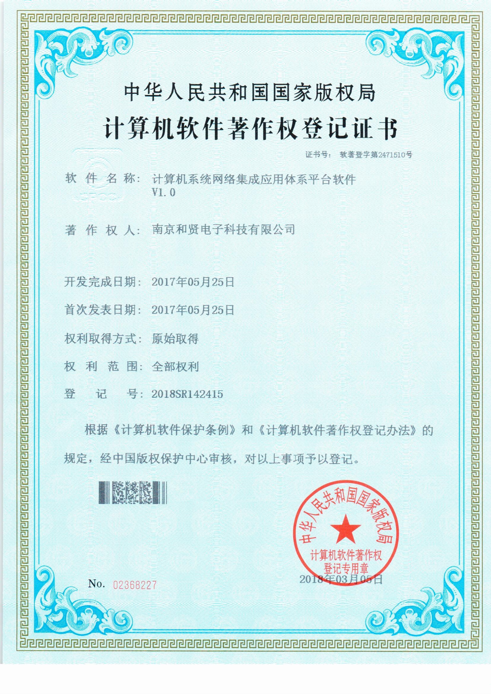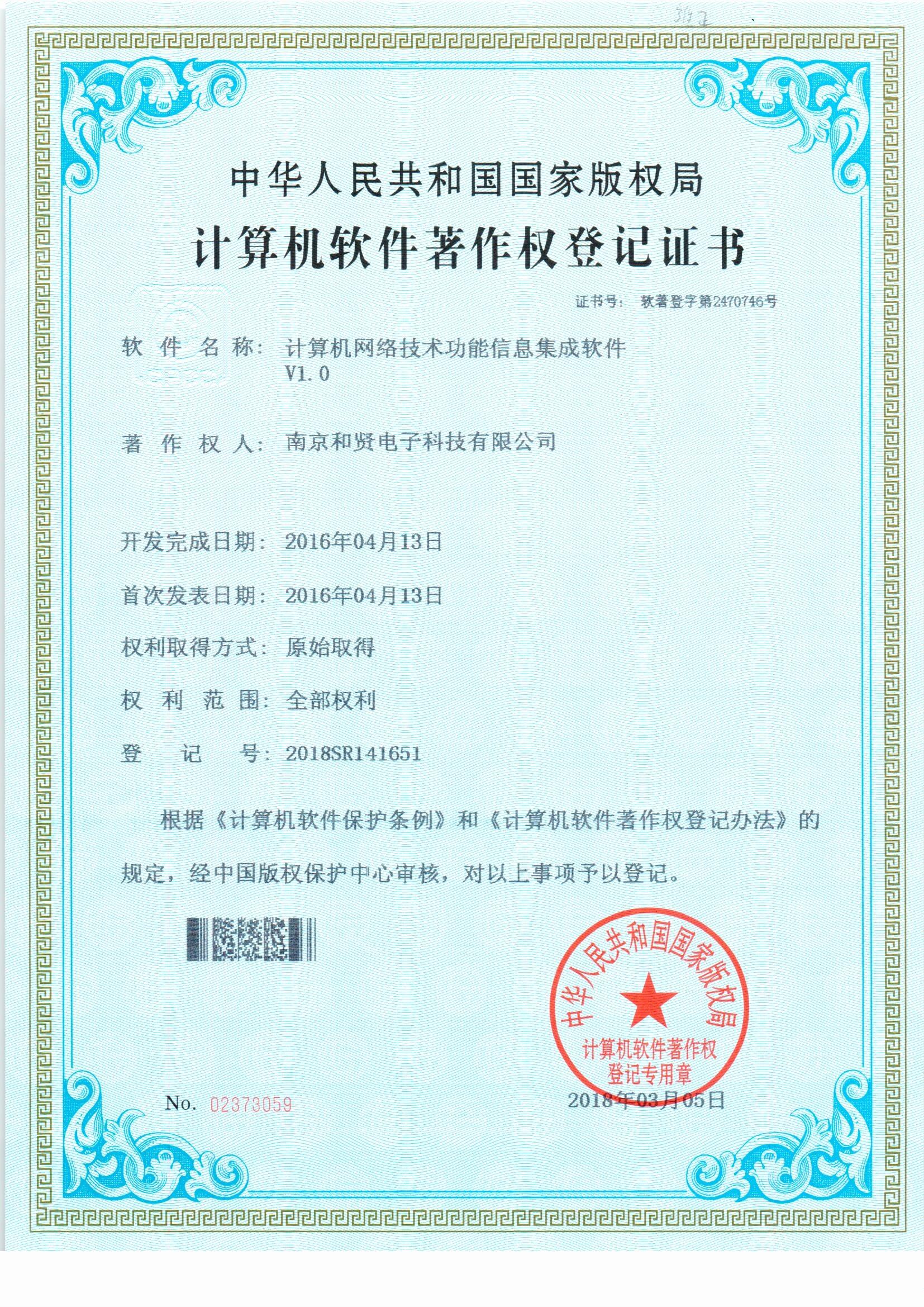 南京和贤电子科技有限公司成立于2015年,注册资金5550万,旗下设有3家子公司,年销售额逾1亿元人民币.拥有弱电施工二级、计算机系统集成三级等各项资质。是一家专业的IT产品增值业务供应商和系统集成项目服务商,为各级政府部门及不同行业的用户提供系统集成的设计、安装、调试、维护、服务,符合其个性需要的系统解决方案。 和贤公司已携手IBM、EMC、阿里、联想、戴尔、锐捷、深信服、天融信等国际国内的优秀产品厂商在智能网络、人工智能、..